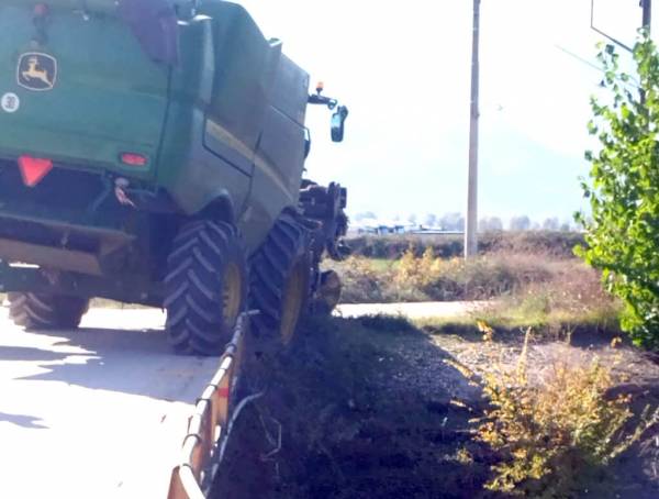 Θεριζοαλωνιστική μηχανή κόλλησε στην παλιά γέφυρα του Δάτου