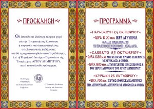 ΠΡΟΣΚΛΗΣΗ “ΔΗΜΗΤΡΙΩΝ” ΕΚΔΗΛΩΣΕΩΝ 2025 – Ι.Ν. ΜΕΓΑΛΗΣ ΠΑΝΑΓΙΑΣ – ΑΓΙΟΥ ΔΗΜΗΤΡΙΟΥ ΘΗΒΩΝ