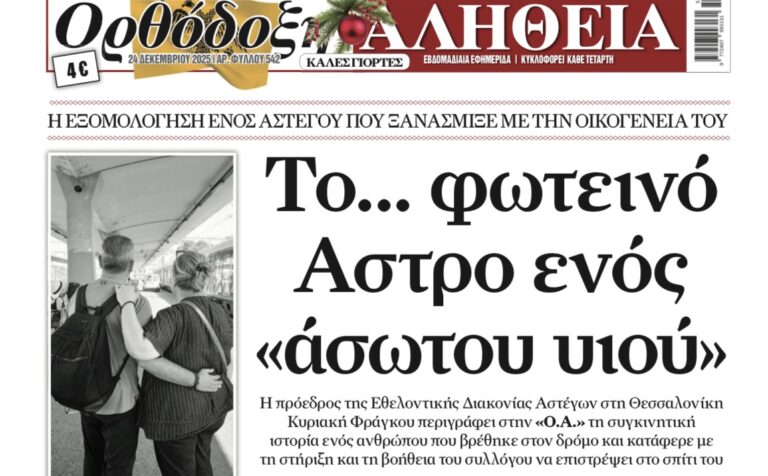 Με το Ευλογημένο Ημερολόγιο 2026 – Αφιέρωμα στους Ομολογητές της Ορθοδοξίας Αυτή την εβδομάδα η «Ορθόδοξη Αλήθεια» κυκλοφορεί για πρώτη φορά με το «Ευλογημένο Ημερολόγιο 2026», αφιερωμένο στους Ομολογητές της Ορθοδοξίας, προσφέροντας στους αναγνώστες ένα βαθύ πνευματικό και κοινωνικό περιεχόμενο, αντάξιο του νοήματος των Χριστουγέννων. Η συγκλονιστική εξομολόγηση ενός αστέγου που γύρισε στο σπίτι Η […]